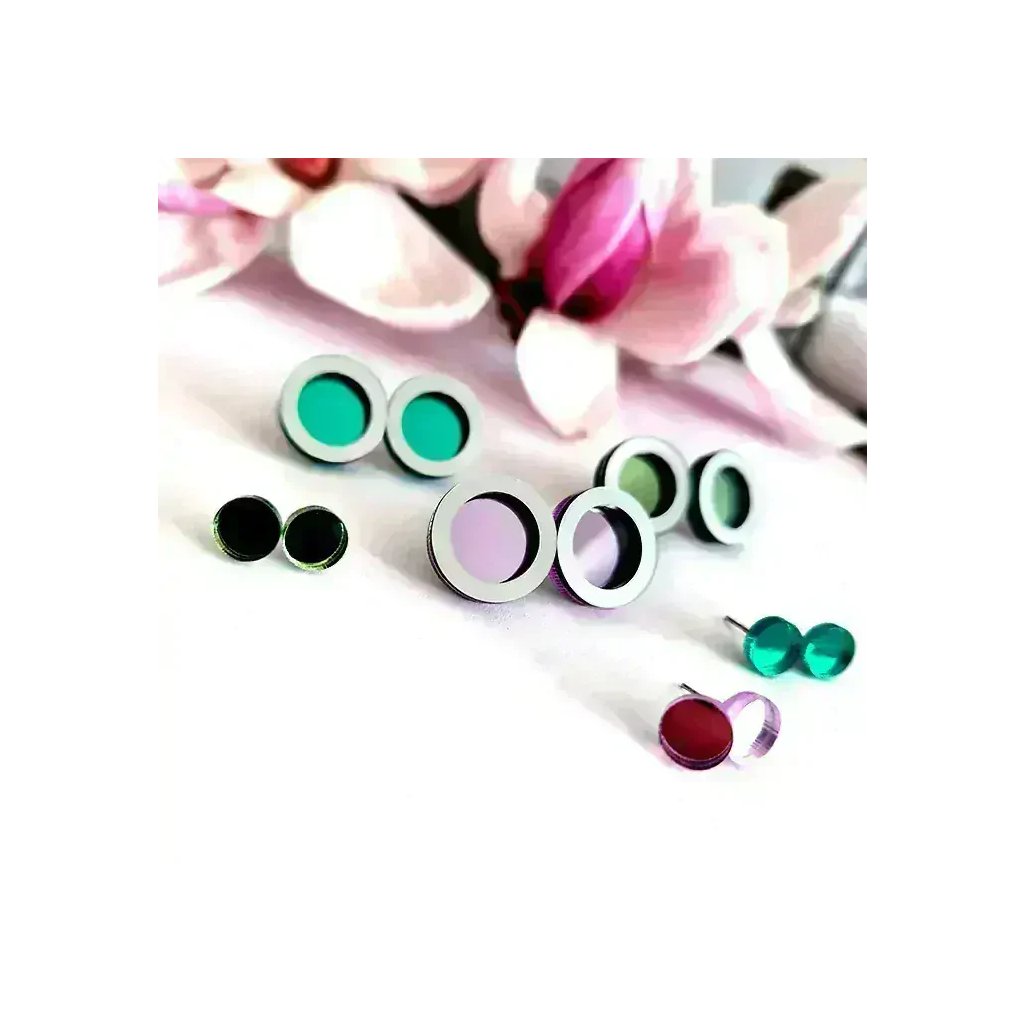 - Materiál: plexisklo, puzety jsou z chirurgické oceli, vhodné pro alergiky