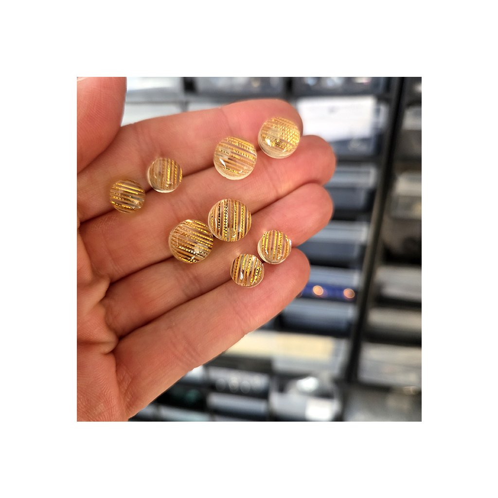 Uvnitř každého kroužku se ukrývají jemné zlaté nitky, které se pod světlem rozzáří tak, že to nejde přehlédnout. Je to ten typ zlaté, která není „příliš“, ale přesto udělá velký dojem.