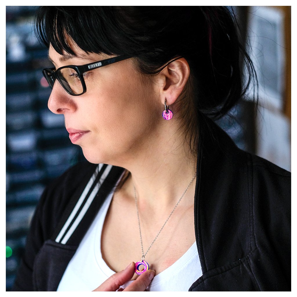 - Materiál: multibarevné akrylové sklo. Řetízek je z nerezové oceli a má nastavitelnou délku 40-45 cm