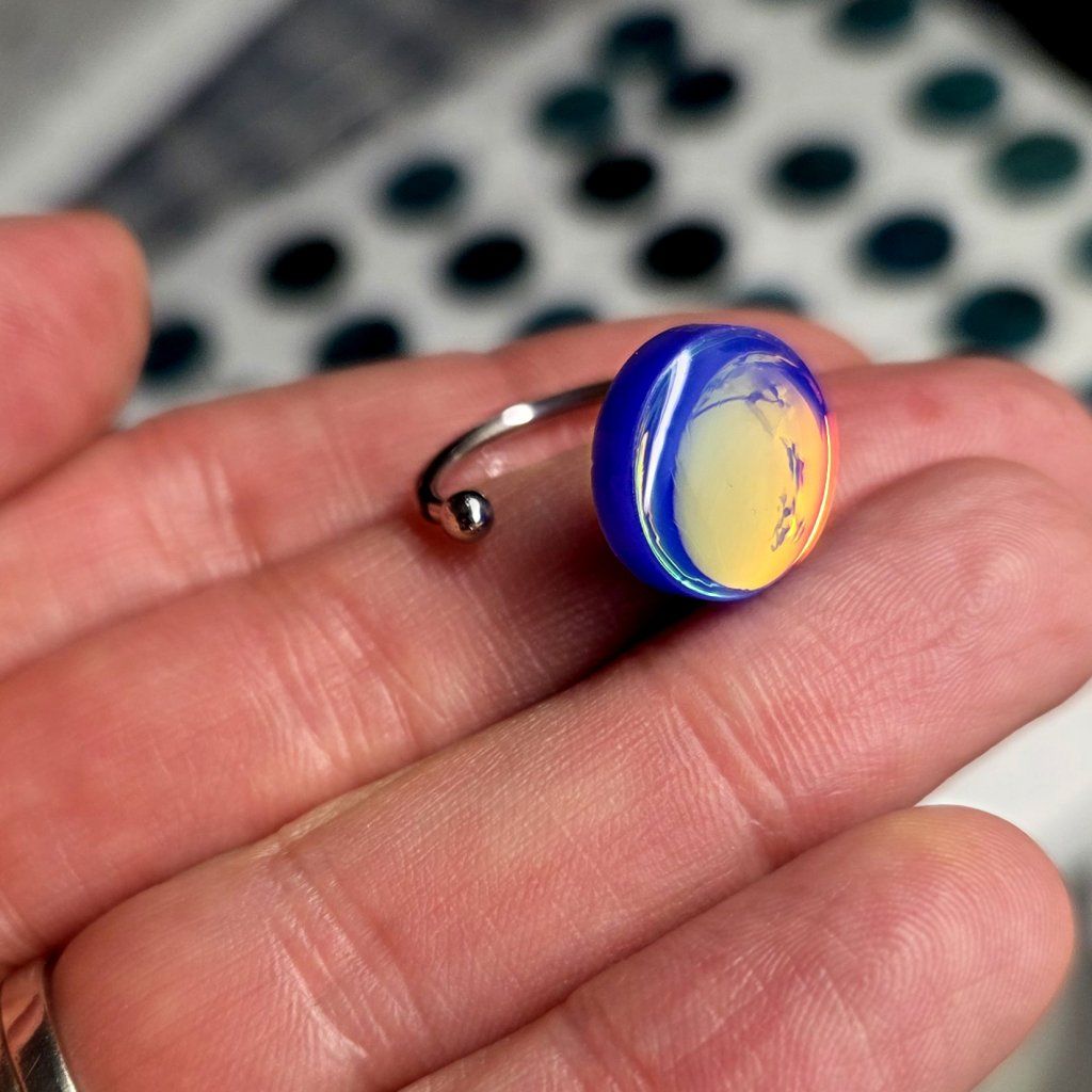 - Materiál: multibarevné akrylové sklo, kroužek je z nerezové oceli.