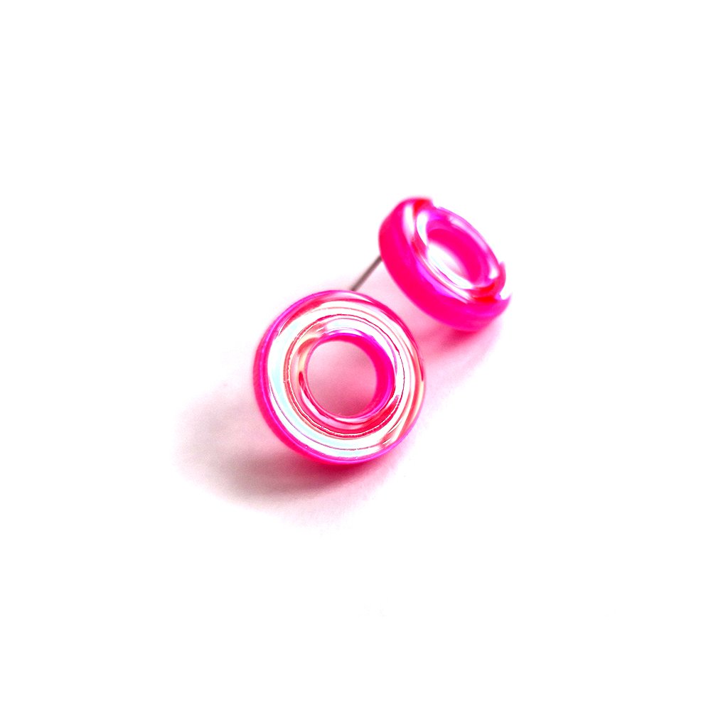 Circle cut UNICORN ULTRA PINK náušnice holografické
