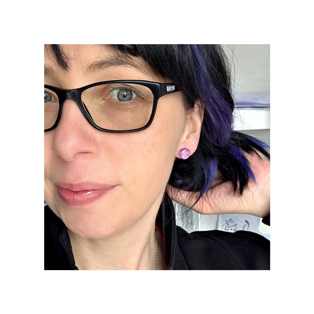 CIRCLE mini Crystal Violet náušnice se třpytkami
