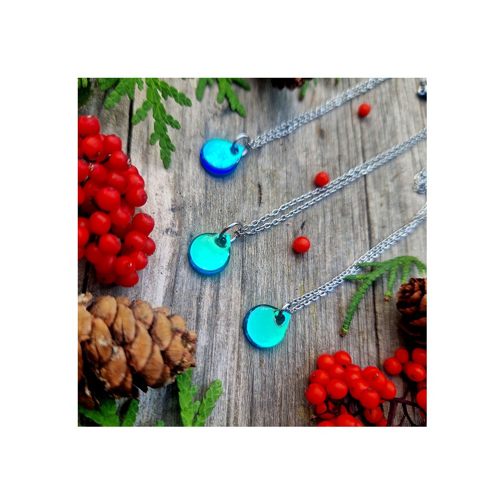 - Materiál: multibarevné akrylové sklo s ochranným lakem, řetízek z nerezové ocel