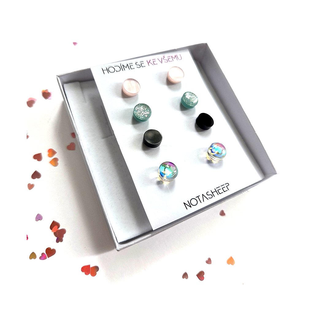 Najdete v ní tyto páry náušnic (všechny s průměrem 8 mm):
