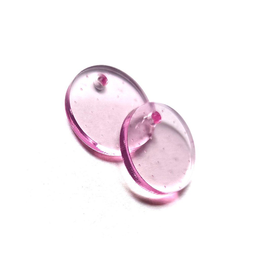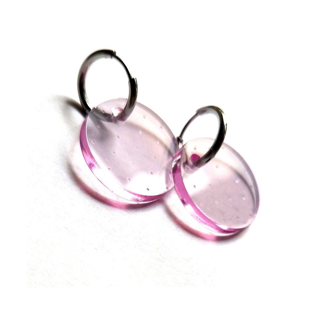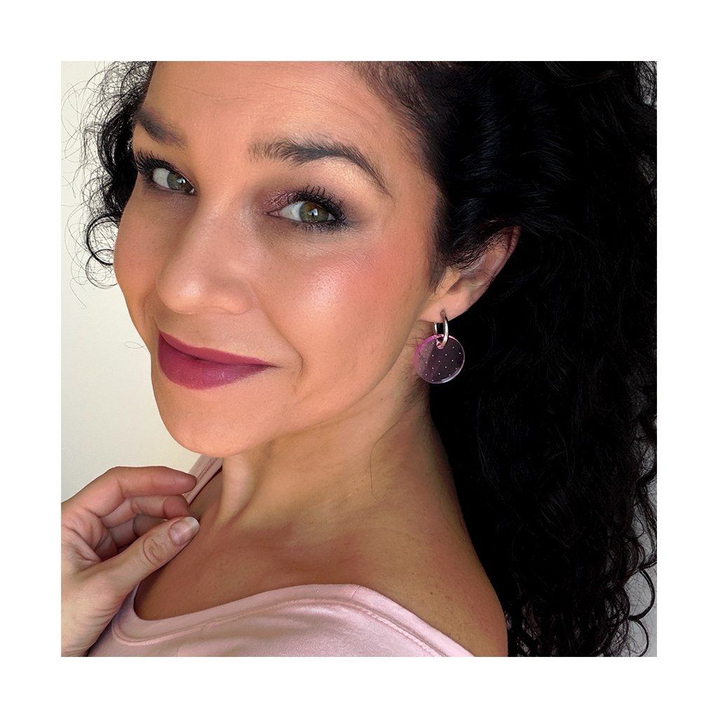 Uvnitř průsvitné růžové plochy se ukrývá rytmus drobných puntíků - jako geometrické kvítky, které pod světlem ožívají. Působí hravě, ale čistě. Jako jaro, které už tiše rozkvétá.
