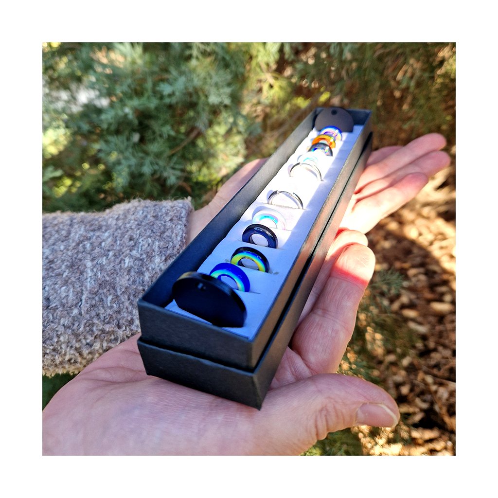 • 4 páry holografických kroužků v různých barvách z kolekcí Unicorn, Mystic, Night a Autumn (od jemné perleťově bílé až po výrazné tyrkysové)